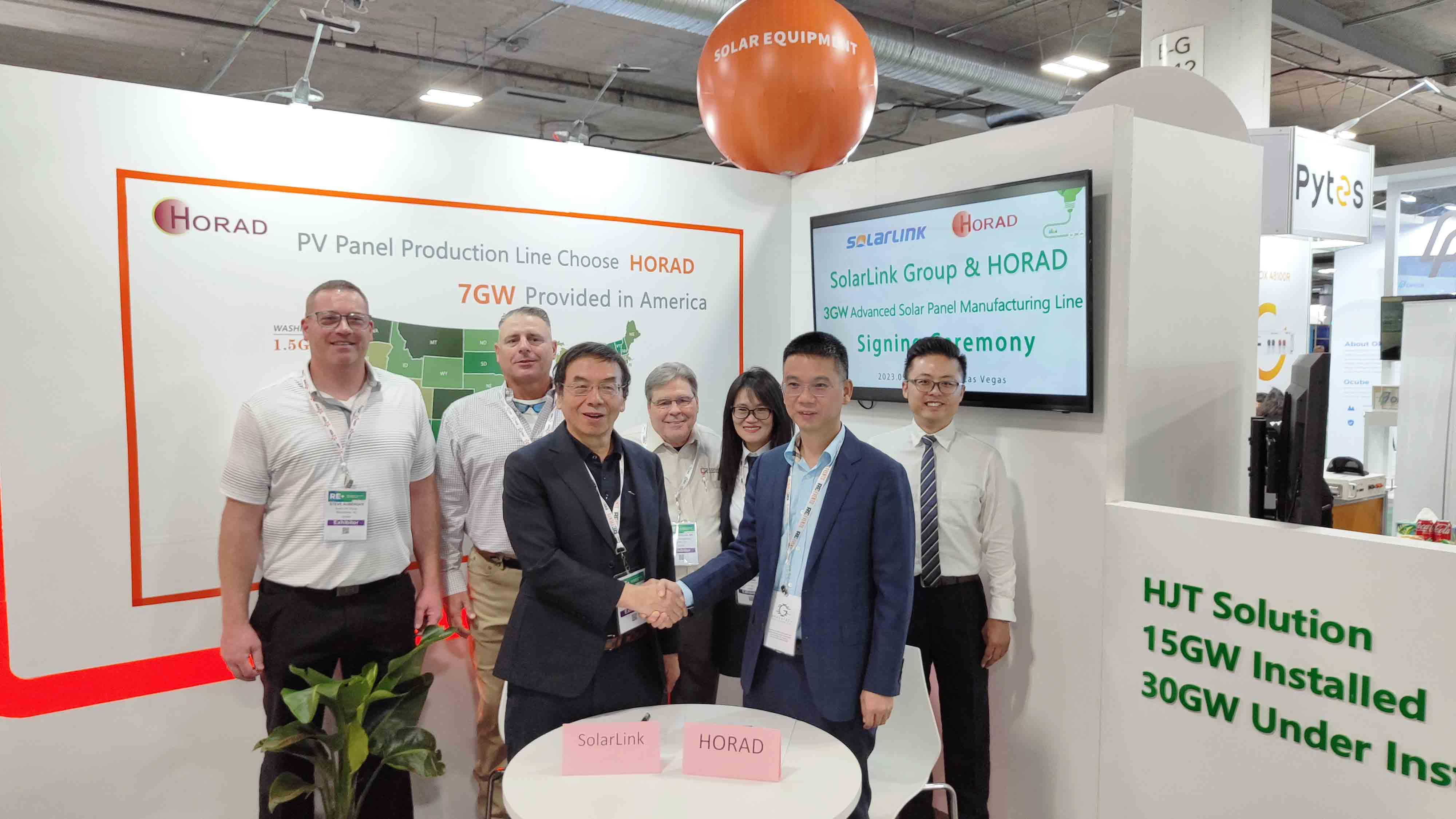 当地时间2023年9月13日,在美国RE+光伏展会上,宏瑞达与美国本土光伏新贵SolarLink正式签署了SolarLink在美国内华达州基地的 3GW 组件智能制造整线设备采购协议。