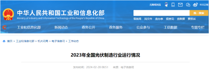 2月28日,工信部发布《2023年全国光伏制造行业运行情况》。数据显示,2023年,电池环节,全国晶硅电池产量超过545GW,同比增长64.9%;产品出口39.3GW,同比增长65.5%。