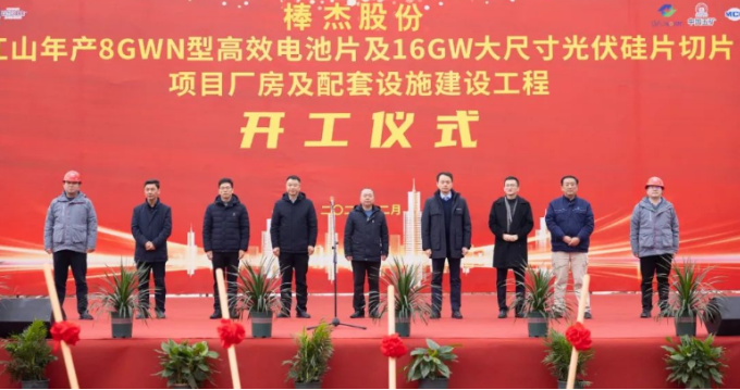 国际能源网获悉,2月25日,棒杰江山年产8GW N型高效电池片及16GW大尺寸光伏硅片切片项目厂房及配套设施建设工程正式开工。