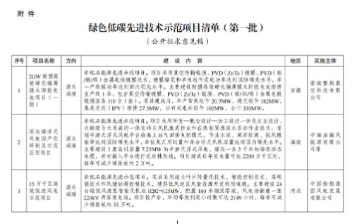 3月19日,国家发展改革委发布向社会公开征求《绿色低碳先进技术示范项目清单(第一批)》意见的公告。