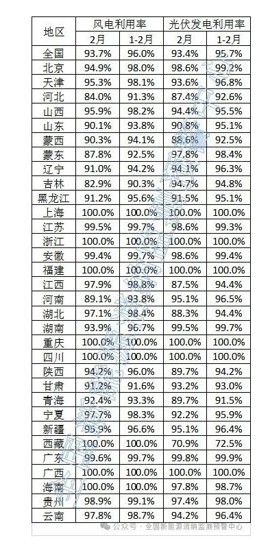 国际能源网获悉,4月2日,全国新能源消纳监测预警中心发布《2024年2月全国新能源并网消纳情况》。数据显示,2月全国平均光伏发电利用率为93.4%。与1月98%相比,下降4.6个百分点。其中,上海、浙江、福建、重庆、四川、广西等6省光伏利用率为100%;分布式光伏装机大省山东光伏利用率为90.8%,与1月99.4%相比下降8.6个百分点。另一个分分布式装机大省河北光伏利用率仅87.4%,其1月的利用率为97.8%,同样呈现出大幅下降的趋势。