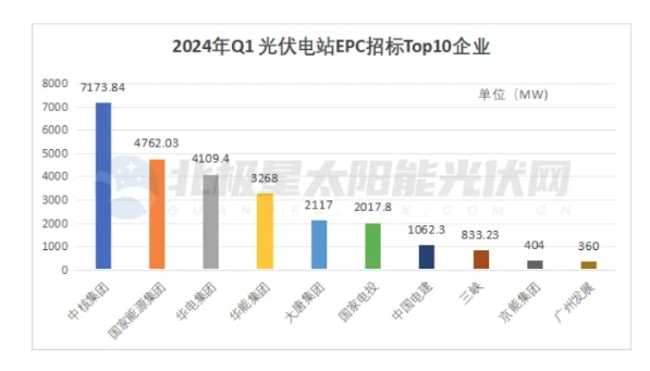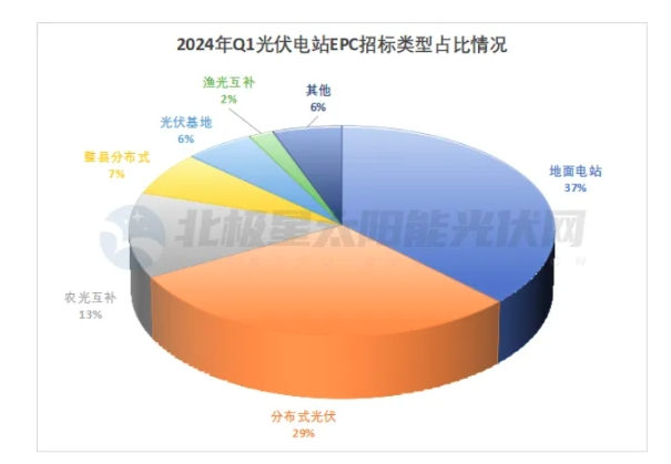 据北极星统计公开信息,2024年一季度,以中核集团、国家能源集团、华电集团、华能集团、大唐集团、国家电投、中国电建等为主的电站开发主力军,启动超56GW光伏电站EPC招标项目。其中,地面电站总规模达到约33GW,分布式光伏项目约16.58GW,整县项目5.188GW,光伏基地1.452GW。
