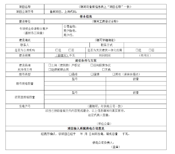 浦东新区光伏发电项目专项资金申请表