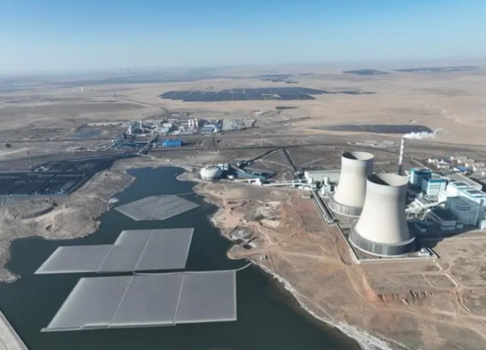 距光伏电站20多公里处,国能宁夏电力宁东电厂创新利用煤矿开采时形成的闲置矿井水域,用抗腐蚀性的环保光伏组件在湖面上因地制宜建成漂浮分布式光伏电站,这是西北首个水面漂浮电站,也是中国首个矿井水水域漂浮电站。