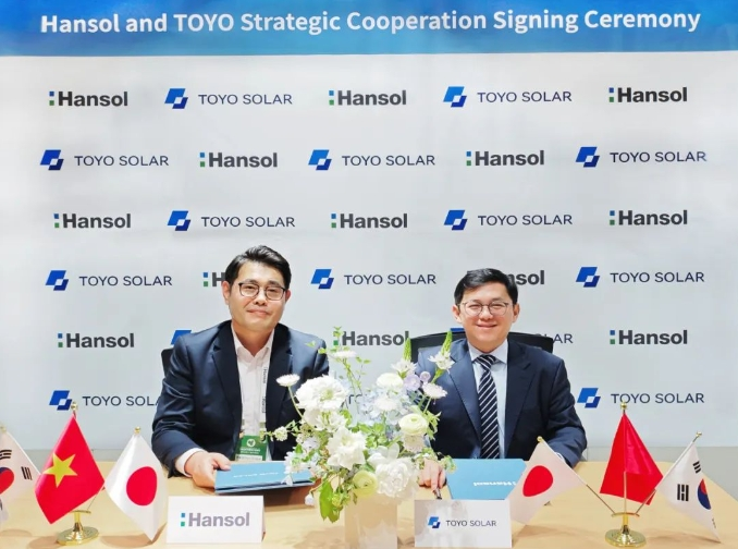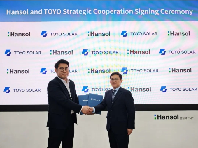 Terry Yang 表示,“非常感谢Hansol Technics对TOYO的信任和肯定。此次合作有助于TOYO进一步拓展国际光伏市场,也将推动双方在光伏生产上降本增效,实现双赢。在此次合作基础上,双方将协调各方优势资源,开拓更广阔的合作空间,以便实现互利共赢,共同助力光伏产业高质量发展。”