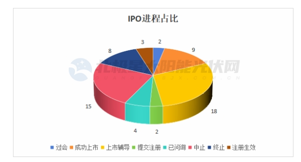 具体来看,9家已如愿上市的光伏企业分别是艾聚能、鑫宏业、阿特斯、时创能源、东方碳素、科强股份、艾罗能源、西典新能以及许昌智能;润阳股份、永臻股份、拉普拉斯的IPO注册申请已经获批生效,美科股份、三晶股份正在等待注册审核结果,上述5家均进入了最后冲刺阶段;此外,美景新材、晶阳机电、兴洋科技、天盛股份4家企业已经进入问询环节;华电新能、中润光能则分别于去年6月和12月成功过会。