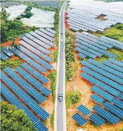 瞰海南省琼海市京能潭门农光互补示范项目光伏建设基地。蒙钟德摄(人民图片)