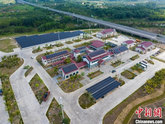 图为5月16日,航拍保亭“光储充”一体化低碳服务区。华为数字能源供图