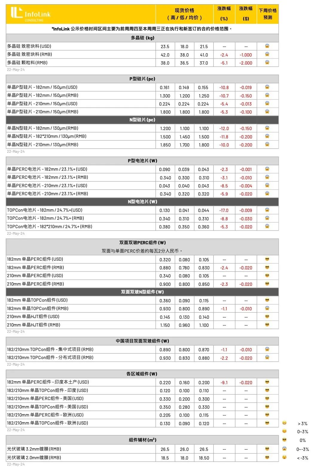 5月22日,InfoLink Consulting发布本周光伏供应链价格。