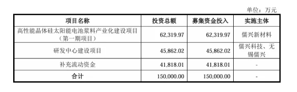 据了解,此次IPO,儒兴科技拟募资15亿元,用于晶体硅太阳能电池浆料项目、研发中心及流动资金。