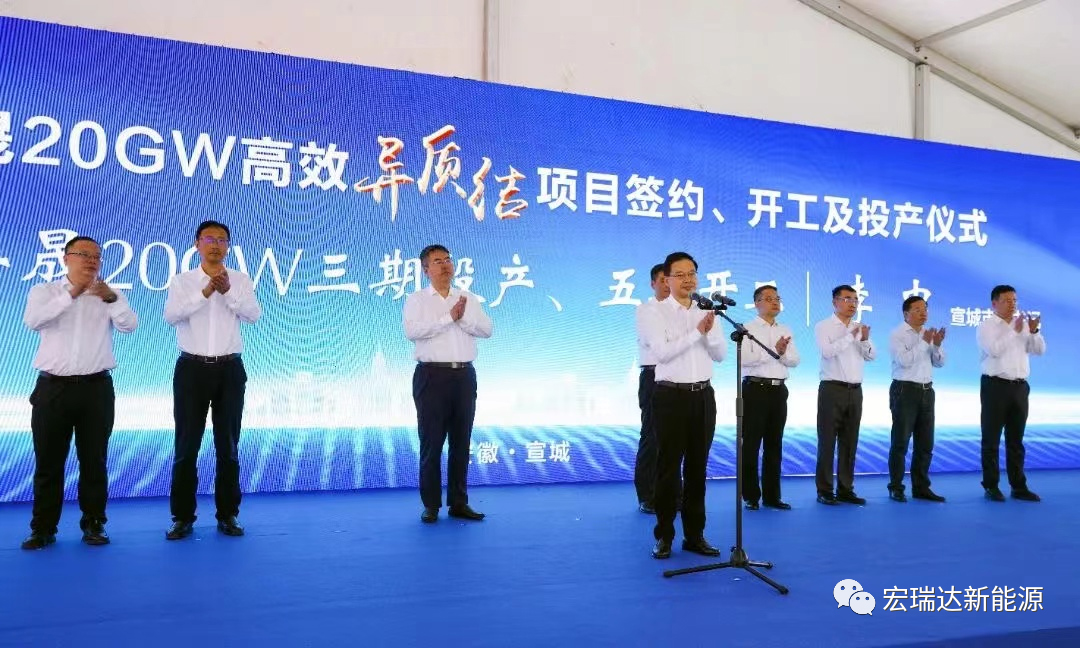 签约仪式上,华晟董事长徐晓华先生表示:“华晟在推行量产导入银包铜浆料,加之应用120μm硅片,推动异质结电池全成本逼近PERC,组件全成本与PERC打平甚至胜出。在异质结/钙钛矿叠层电池研发上,目标在2025年,实现G12异质结钙钛矿晶硅叠层电池效率30%。要实现上述目标,需要与设备厂商、材料厂商一起尽快促成异质结性价比的提升。华晟选择宏瑞达作为全球异质结组件智能工厂整线供应商,源于宏瑞达先进的异质结整线封装技术、更有竞争力的异质结封装设备和在交付能力、安调运维服务等方面提供的无忧保障。此次将合作推上了一个新高度,希望双方不断加强交流,相互支持,相互信赖,携手共进更大的国际市场。