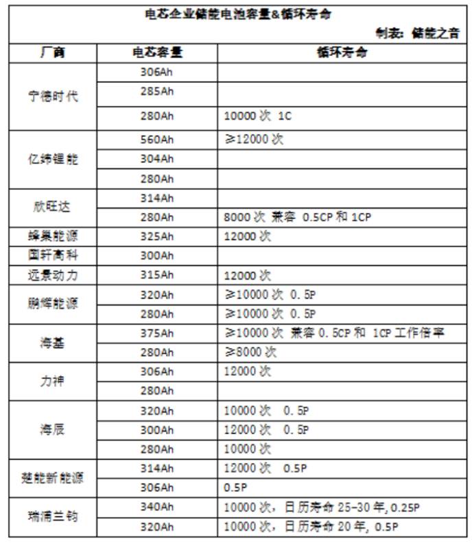 围绕储能市场,锂电厂商间另外一个竞争高点是大容量、长循环寿命电芯。目前,280Ah电芯是储能,特别是大储领域的主流产品。这一规格来源于宁德时代早期为大巴设计的电池。近1-2年来,锂电厂商正在试图打破这一标准,纷纷推出更大容量的电芯。