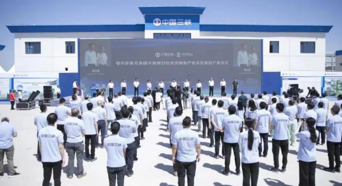 纳日松项目是内蒙古自治区第一批风光制氢一体化示范项目,是鄂尔多斯、内蒙古自治区、全国乃至全球首个最大的万吨级新能源制氢项目,由中国三峡新能源(集团)股份有限公司与满世投资集团有限公司合资建设。项目利用采煤回填区建设光伏电站,年均发电量约为7.4亿千瓦时,其中20%将直接输送至当地电网,剩余80%用于绿氢生产。项目安装15套1000标方/小时的碱性电解制氢装备,年产氢气约1万吨、氧气约8万。
